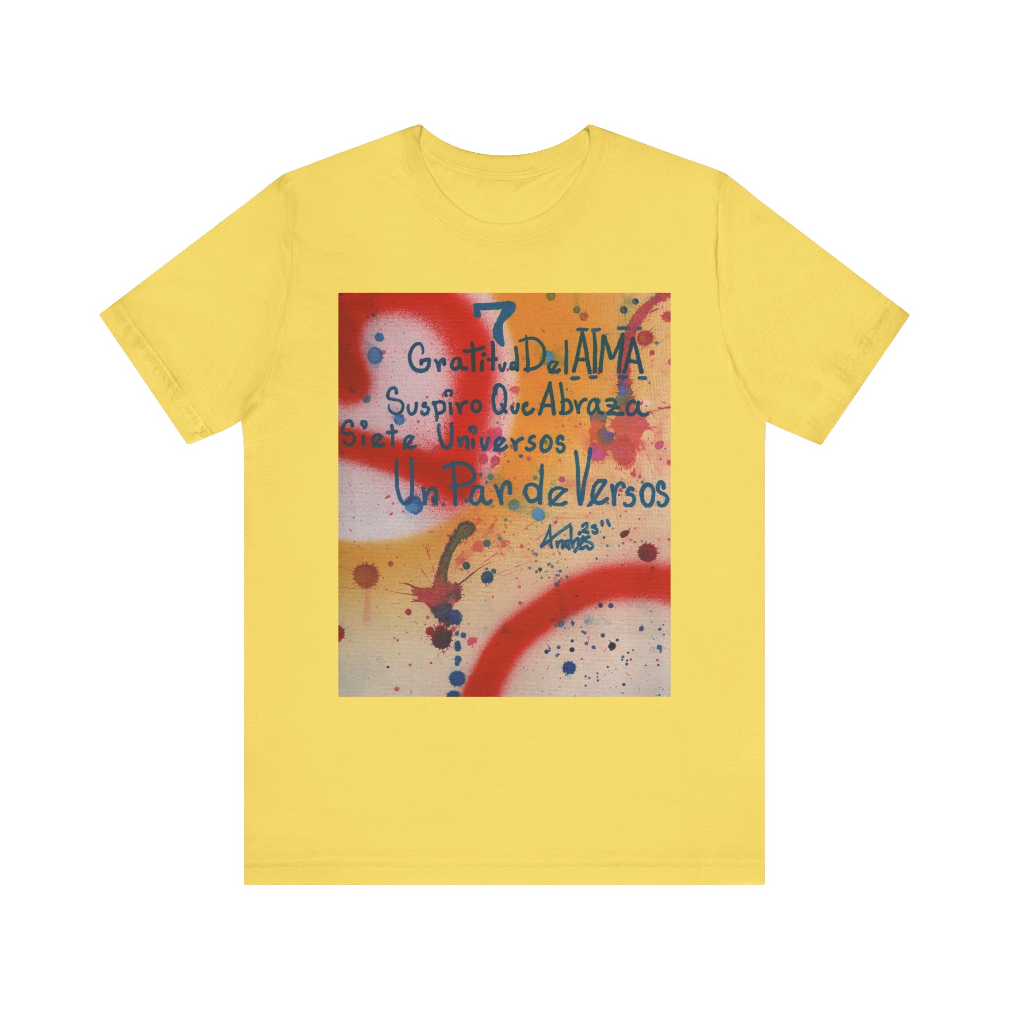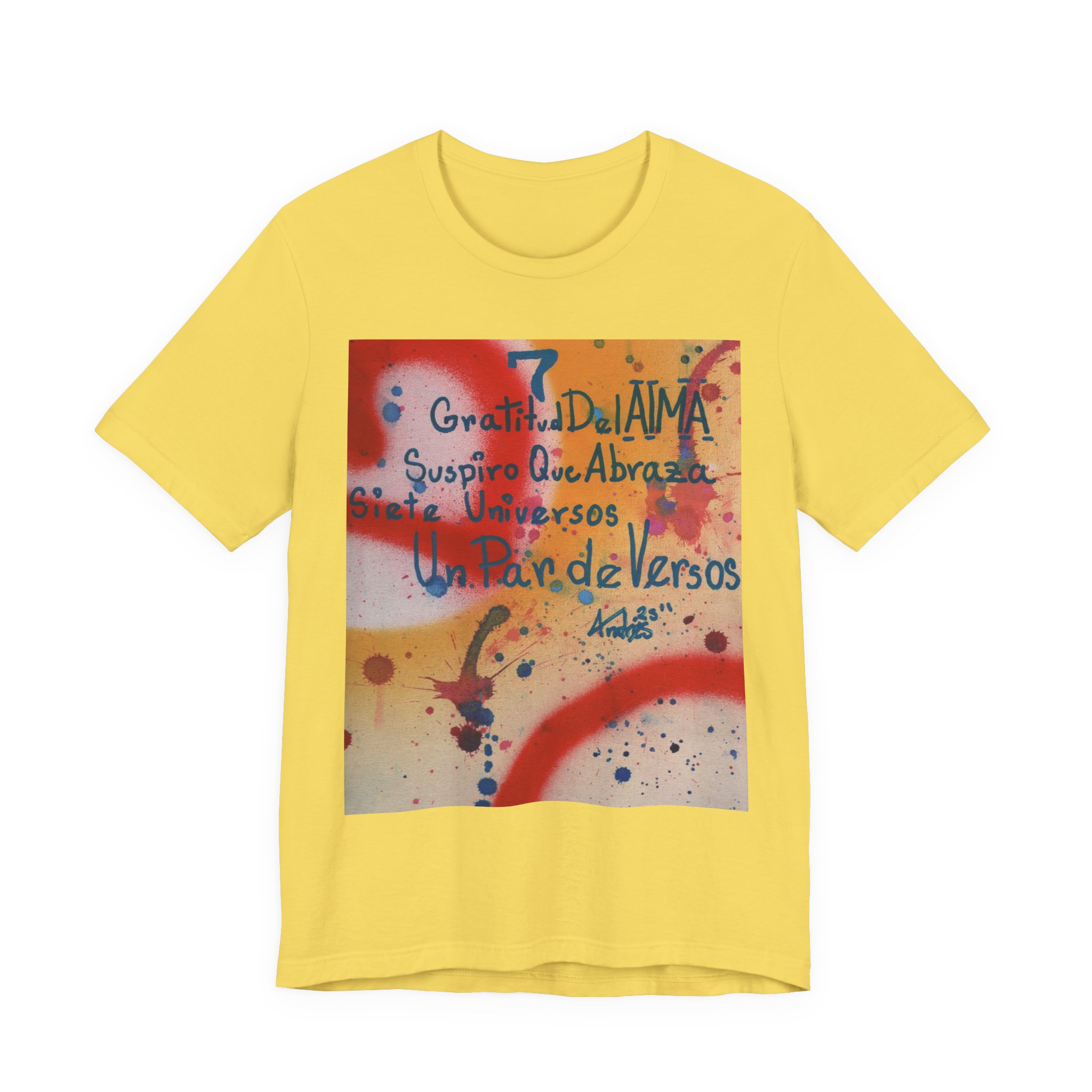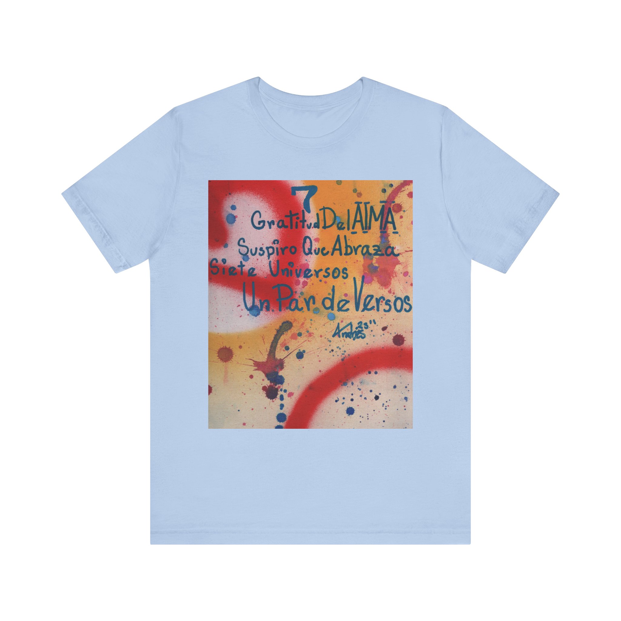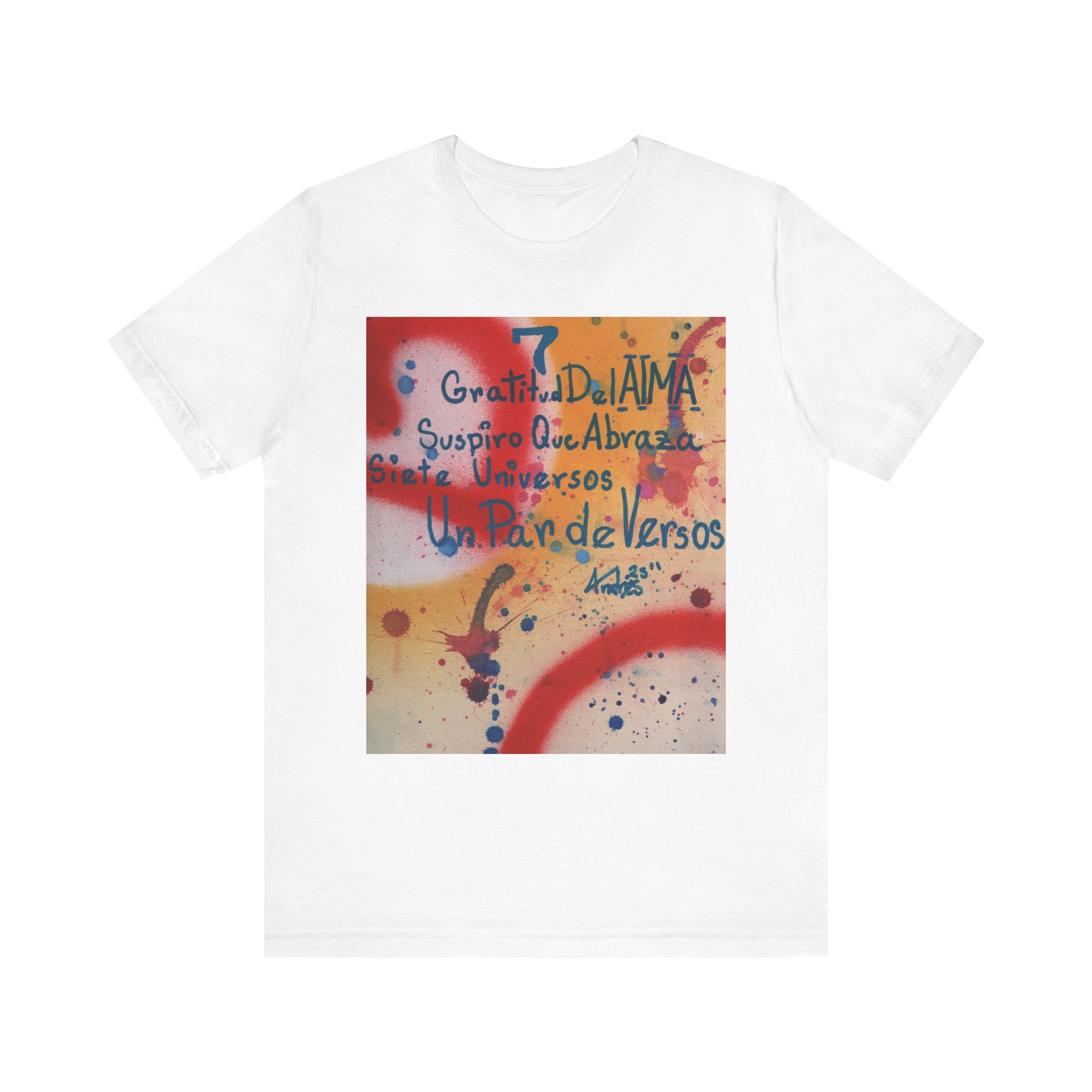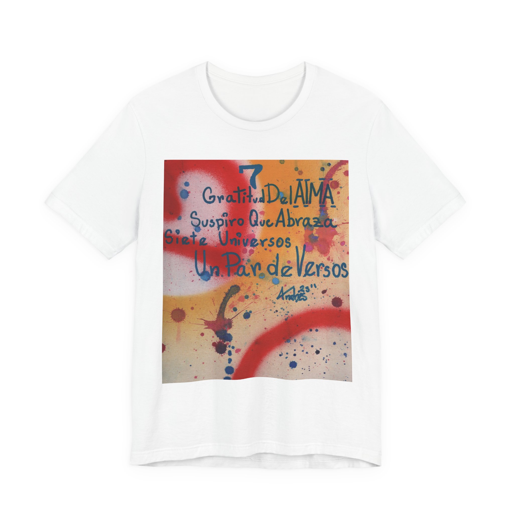 The “Abraza” tee is a fusion of poetry, fine art, and wearable comfort. Inspired by the original 1/1 artwork by Andrés David Rodríguez García—crafted with prime spray & fine textile acrylic on a premium canvas panel (9 x 12 in.)—this design embodies soul, serenity, and connection. A piece that transforms not only spaces but also personal style, making every wear an act of self-expression.