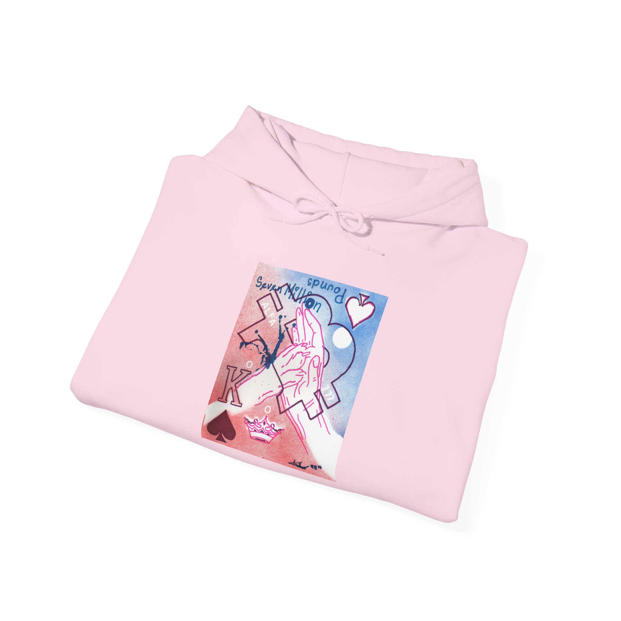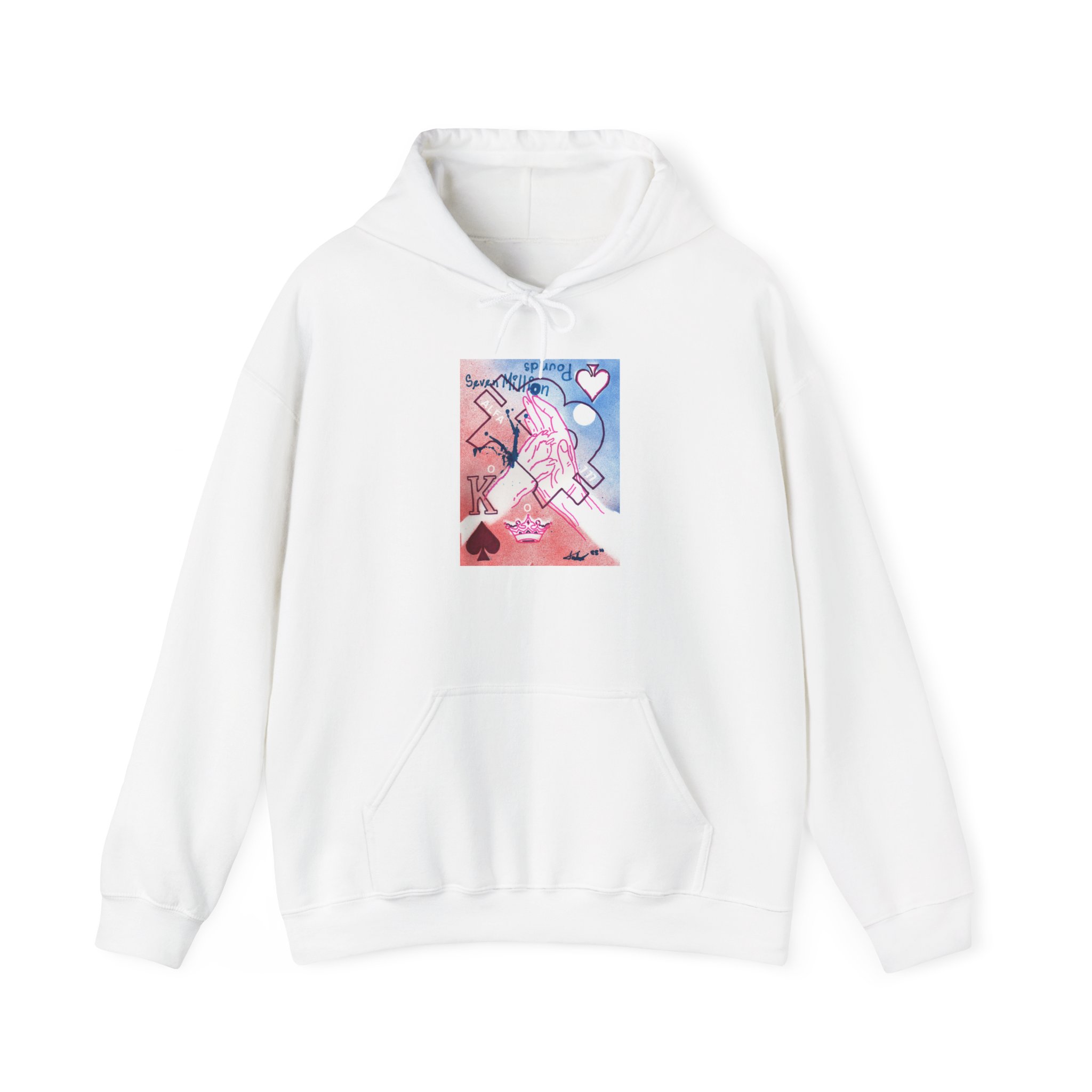 Wrap yourself in royalty and artistic expression with the El Toque Real hoodie—an exclusive wearable piece inspired by Andrés David’s original 8.5 x 11 in. handmade artwork. Designed with pink & violet fine tip marker and primer spray paint on premium cardstock, this piece fuses street art energy with timeless elegance.
